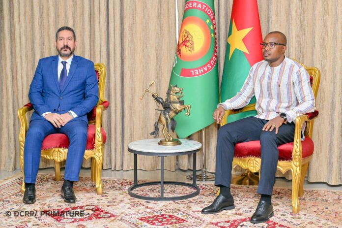 Le Premier ministre, Rimtalba Jean Emmanuel Ouédraogo, a accordé, ce mardi 10 mars 2026, une audience à l’ambassadeur du Royaume du Maroc au Burkina Faso, Youssef Slaoui. Le Chef du Gouvernement et le diplomate marocain ont échangé sur les axes prioritaires de la coopération bilatérale entre les deux pays.