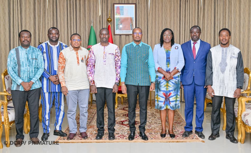 Le Premier ministre, Rimtalba Jean Emmanuel Ouédraogo, a reçu en audience, ce mardi 24 mars 2026 à Ouagadougou, une délégation de responsables de sociétés savantes engagées dans la lutte contre le cancer au Burkina Faso. Conduite par le Pr Nayi Zongo, président de la Société burkinabè de prévention et de chirurgie des cancers (SOBUPCCAN), la délégation comprenait également des membres de la Société burkinabè de radiothérapie oncologique (SOBURO). Les échanges ont porté sur l’état de la lutte contre le cancer au Burkina Faso ainsi que sur l’organisation du tout premier congrès national de cancérologie.